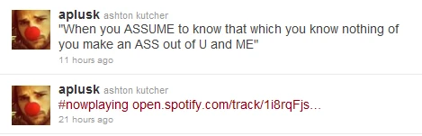 Однако Эштон Катчер первым сделал попытку отреагировать на эти слухи, представившие его не в лучшем свете. Сначала он в своём микроблоге оставил ссылку на спетую им песню «Don’t Believe the Hype», название которой можно перевести как «Не верь слухам», а потом написал, что узнал о себе то, чего он о себе не знал.