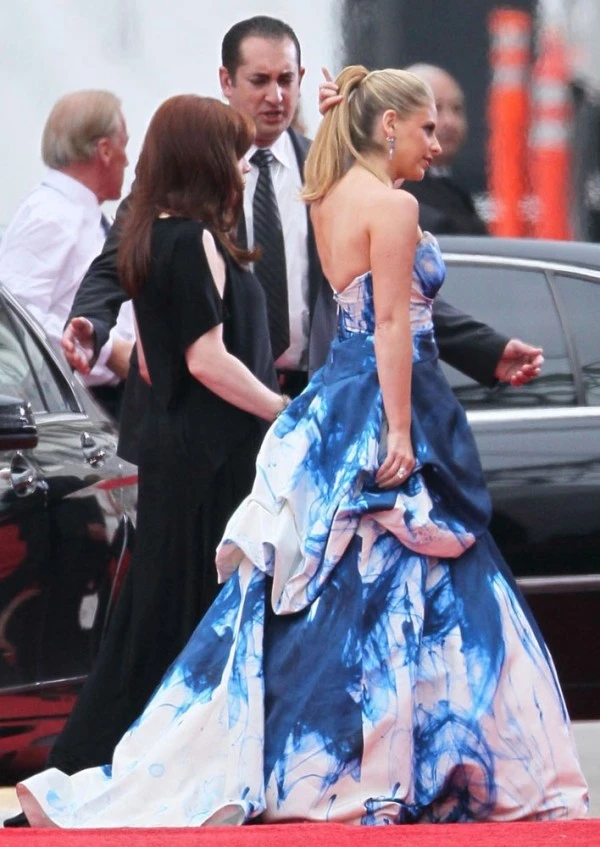 Смешно, но я даже не перемерила всех платьев, — сказала Сара Мишель Геллар, позируя на красной ковровой дорожке. — Вошла моя двухлетняя дочка, подошла к этому платью и сказала: «Мама, надень это!» Так что я надела его и сказала: «Хорошо» Ей оно действительно понравилось. Она выбрала сумочку и туфли. Я дала ей подобрать всё для него.Однако стилисты не согласны с выбором девочки, считая платье из летней коллекции Monique Lhuillier «перегруженным». Они рекомендуют Саре Мишель Геллар в следующий раз выбирать либо пышное платье, либо цветное.