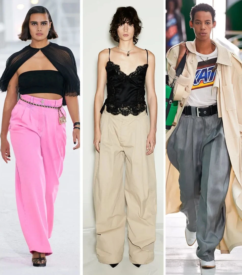 Брюки в стиле 80-х снова в моде! Широкие брюки с высокой посадкой отлично смотрятся с обувью на каблуке. Смотрите пример отличного сочетания в статье Morela Russo.