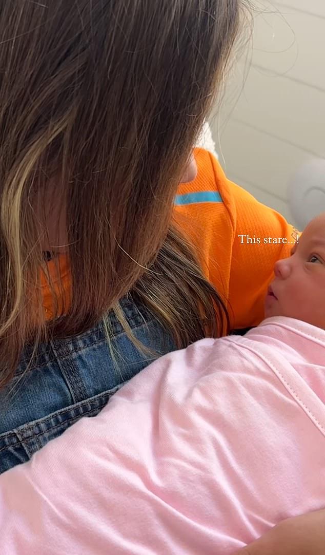 На видео Дженна обнимает младенца, пока ее дети знакомятся со своей новой сестрой.