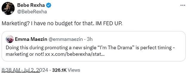 Четырежды номинированная на премию «Грэмми» певица Биби Рекса заявила, что сыта по горло музыкальной индустрией, опубликовав серию гневных твитов во вторник.
