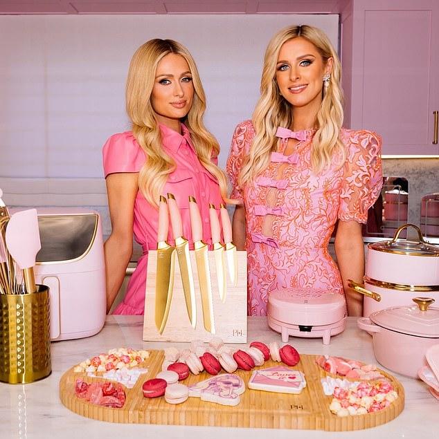 На снимке, сделанном на кухне, сестры демонстрировали новую коллекцию посуды, созданную Пэрис в сотрудничестве с Amazon.