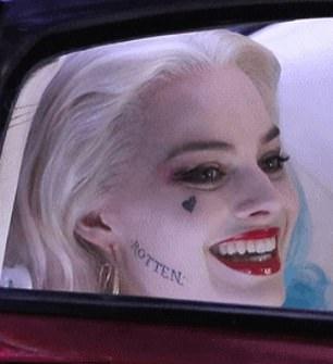 Марго привнесла свою изюминку в образ безумной антигероини: розово-голубые волосы и татуировки на лице стали незабываемым костюмом, вдохновившим многих на создание образов для Хэллоуина.