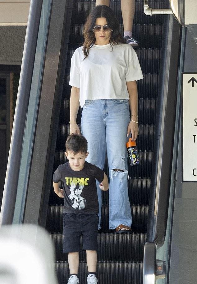 43-летняя актриса, у которой есть сын Каллум и дочь Рианнон от жениха Стива Кази, выбрала для прогулки непринужденный образ: джинсы, белую футболку и солнцезащитные очки-авиаторы. Четырехлетний Каллум был одет в шорты, кроссовки и футболку с изображением Тупака, наслаждаясь временем, проведенным с мамой.