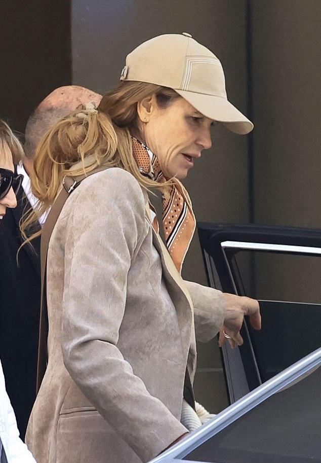 Эль надела светло-бежевый пиджак, голубые джинсы и бейсболку.