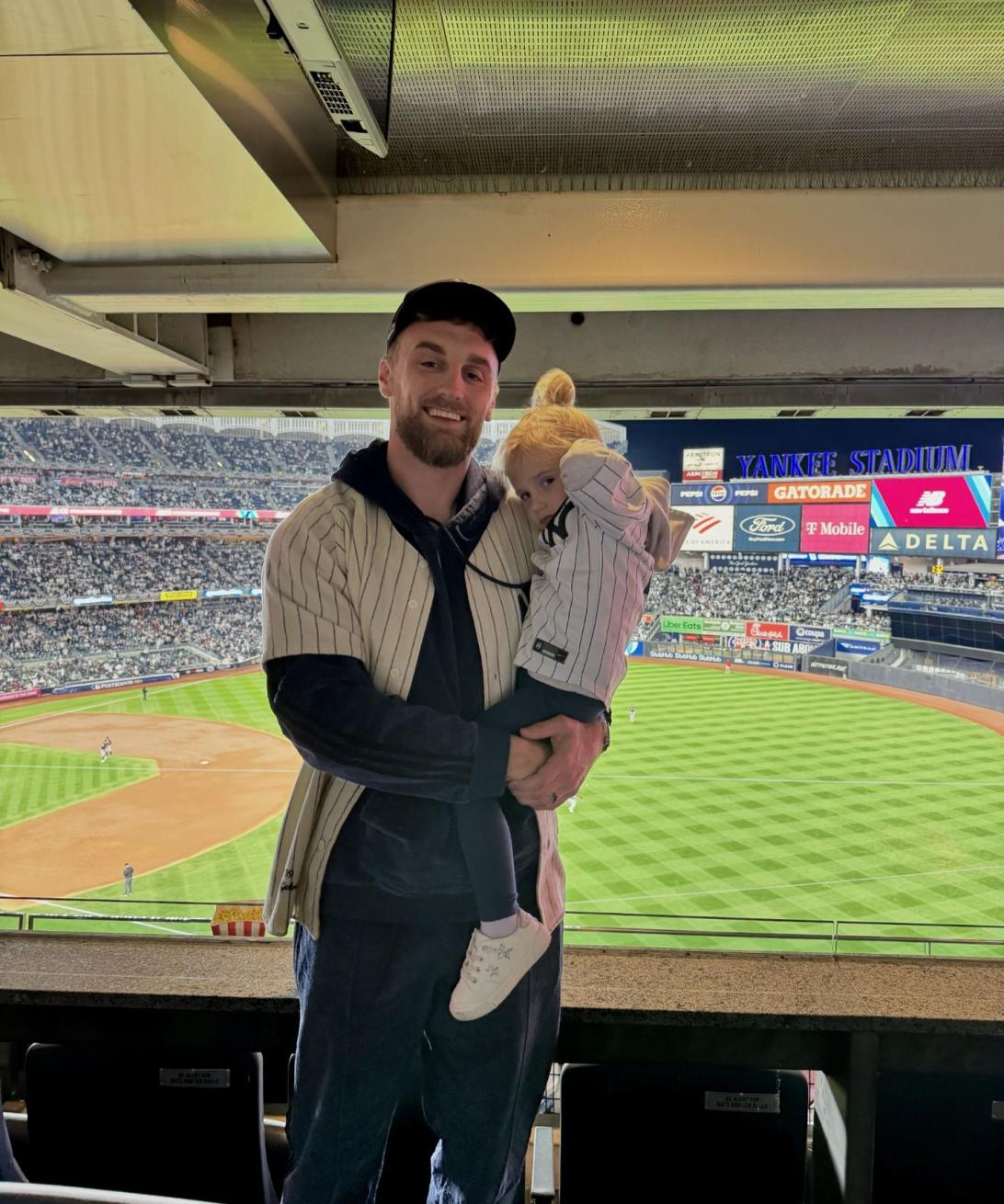 Бывший товарищ по команде и близкий друг Трэвиса Келси, Гериг Дитер, опубликовал милое фото Тейлор Свифт со своей трёхлетней дочерью на матче «Янки» — «Гардианс».