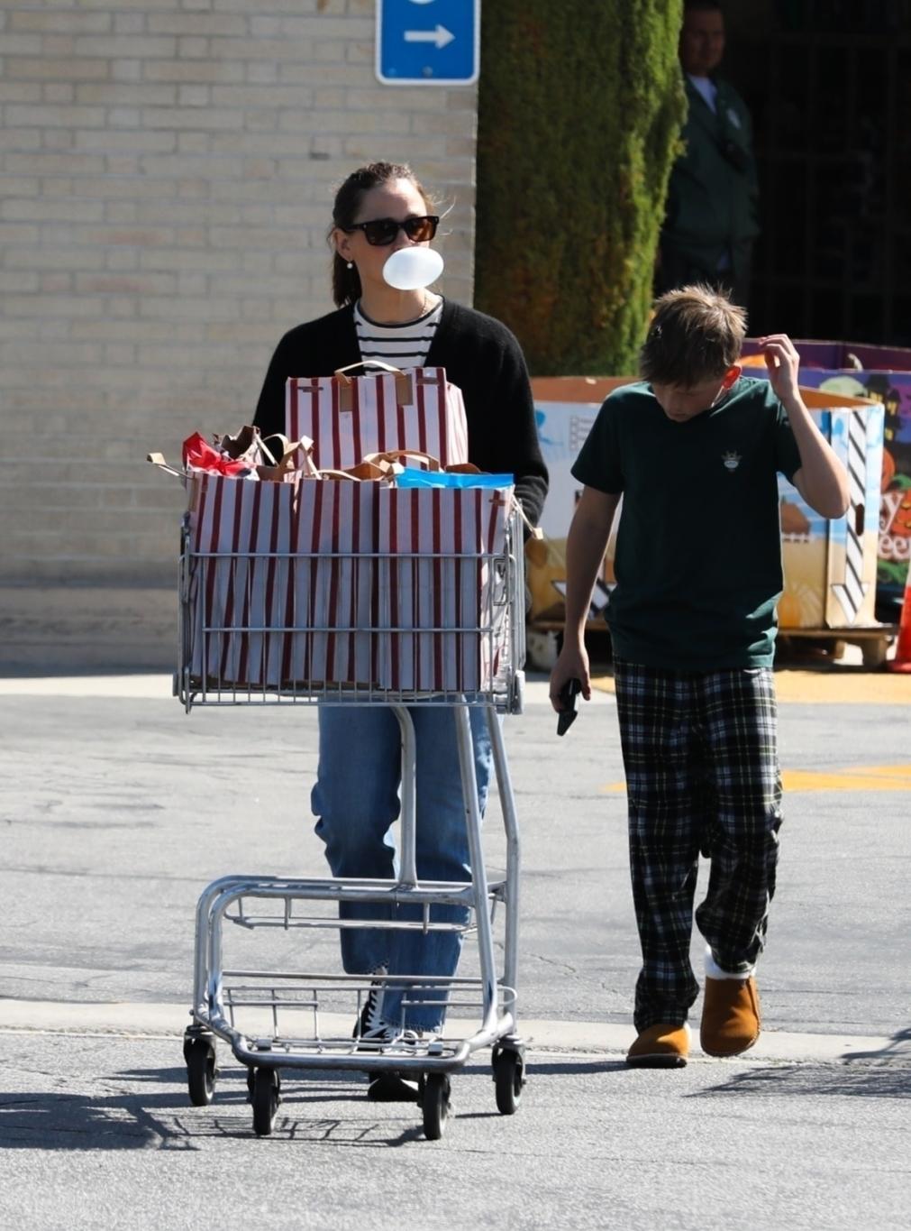 Актрису Дженнифер Гарнер заметили на воскресной закупке продуктов вместе с сыном Сэмюэлем Аффлеком.