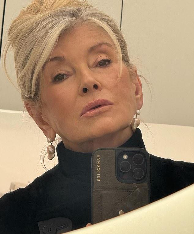 Она выглядела нестареющей в черном свитере водолазки, когда фотографировала себя в зеркале