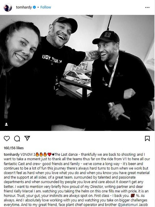 В ноябре прошлого года актёр сообщил в социальной сети о возобновлении съемок «Венома 3» после почти четырёхмесячного перерыва, вызванного забастовкой Гильдии киноактёров США. Харди опубликовал черно-белую фотографию с дублером Джейкобом Томури и подписал: «V3N0M 3❤️ Последний танец – к счастью, мы вернулись к съемкам; и я хочу воспользоваться моментом, чтобы просто поблагодарить все команды, которые были с нами на этом пути от V1 до настоящего момента, весь наш фантастический актерский состав и съемочную группу – хороших друзей и семью – мы прошли долгий путь – это было и остается очень увлекательным путешествием».