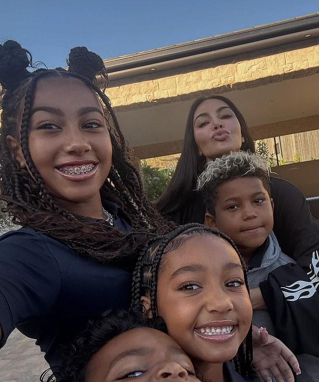 Фотографии ее детей, позирующих в первый школьный день, опубликованные в сентябре, показывают, как быстро они растут. У Норт теперь брекеты, а у Сэйнта светлые пряди.