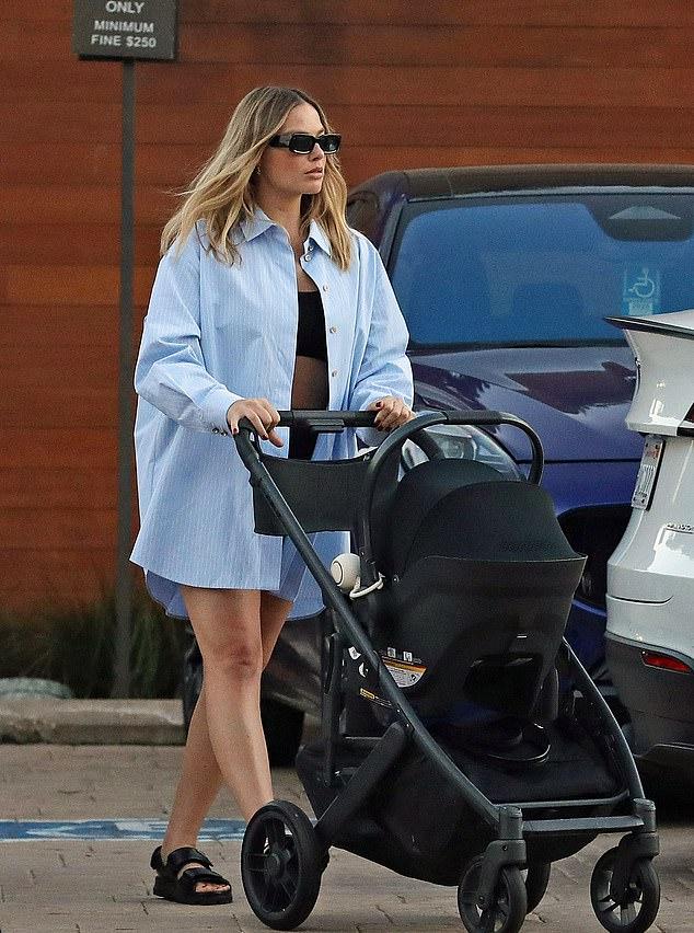 Актриса, родившая мальчика 17 октября, вместе с семьей посетила клуб Soho House’s Little Beach House в Малибу. Счастливую маму сфотографировали с малышом в стильной черной коляске.
