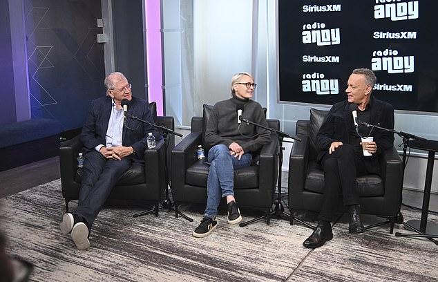 Хэнкс, одетый в элегантный черный пиджак и брюки в тон, сиял во время дискуссии, а Робин выглядела шикарно в сером свитере и выцветших джинсах.