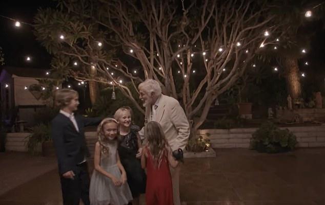 К ним присоединяются его дети и внуки, а в какой-то момент диснеевская легенда позирует под гигантским набором красных воздушных шаров