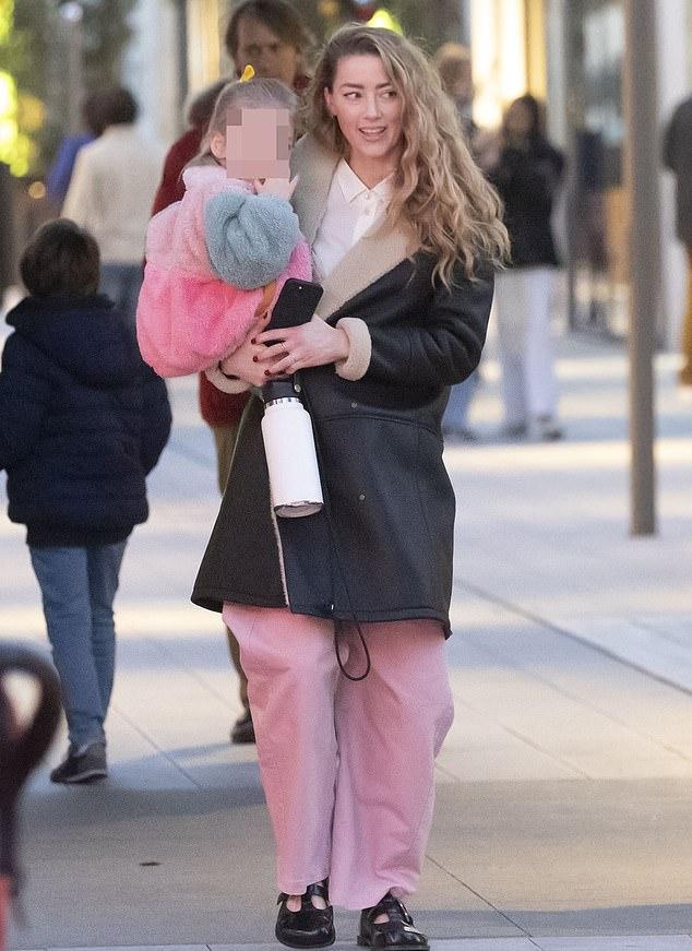 Эмбер Херд в пятницу в Мадриде с дочерью