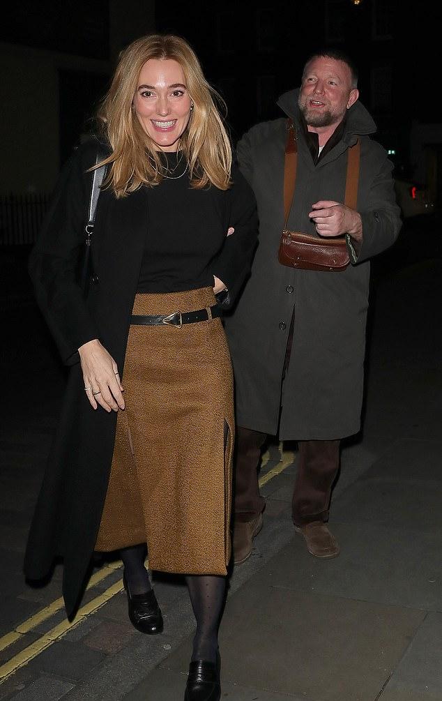 43-летняя актриса выглядела безупречно стильно в длинной золотой юбке с высокой талией, облегающем черном свитере и длинном шерстяном пальто. Сам Гай укрылся от холода в темном тренче, надетом поверх коричневого замшевого костюма. На шее у него висела кожаная сумка.