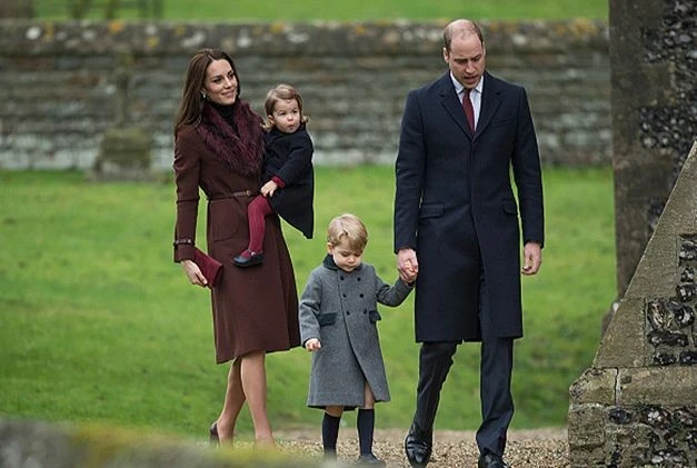 Чета и трое их детей, 11-летний принц Джордж, 9-летняя принцесса Шарлотта и 6-летний принц Луи, были сфотографированы на ежегодном мероприятии в церкви Святой Марии Магдалины в Норфолке, Англия.