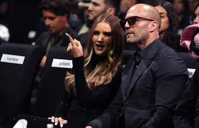 Рози Хантингтон-Уайтли и ее жених Джейсон Стэтхэм посетили матч-реванш Тайсона Фьюри против Александра Усика на арене Kingdom в Эр-Рияде, Саудовская Аравия, в субботу вечером.