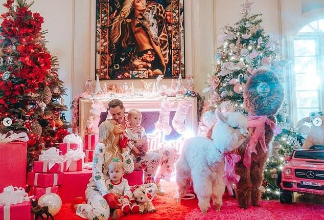 Звезда реалити-шоу и диджей позировала в гостиной у рождественской елки в окружении самых близких.