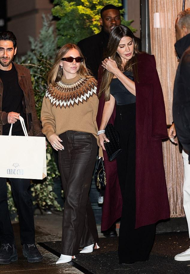 В воскресенье вечером Сидни Суини была замечена в Нью-Йорке в компании своего жениха Джонатана Давино и актрисы Софии Вергары.