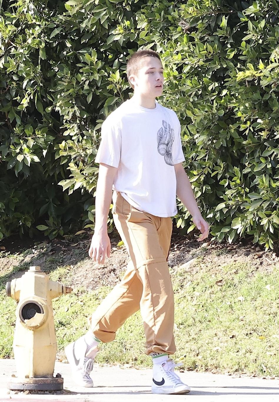 Брат и сестра были одеты в повседневную одежду. На Ноксе были бежевые брюки и футболка с принтом, а Вивьен — кремовая толстовка и светлые вельветовые брюки.