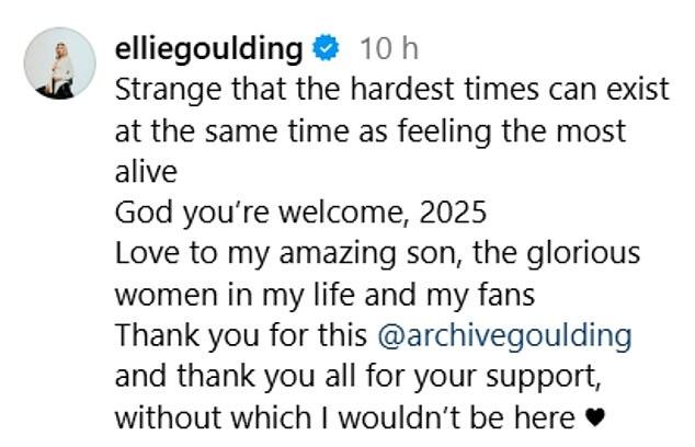 Под видео она написала: «Странно, что самые тяжёлые времена могут совпадать с ощущением наибольшей полноты жизни. Что ж, добро пожаловать, 2025. Люблю моего чудесного сына, замечательных женщин в моей жизни и моих поклонников. Спасибо вам за этот год и за вашу поддержку, без которой меня бы здесь не было ♥️».