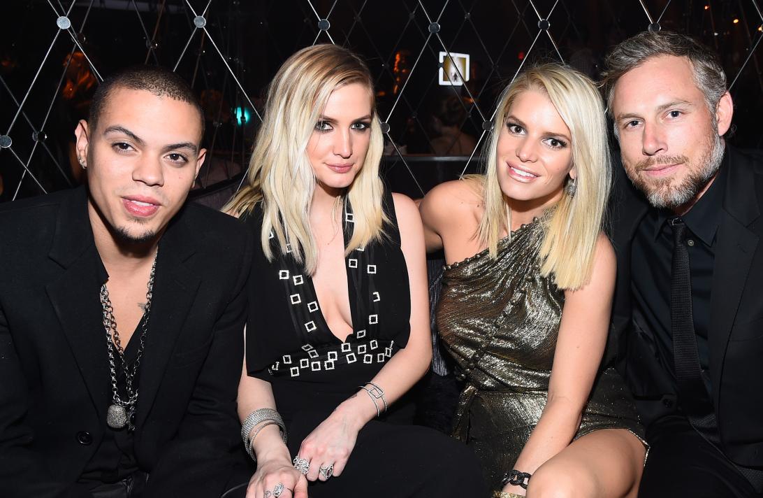 Эван Росс, Эшли Симпсон, Джессика Симпсон и Эрик Джонсон на премьере "Голодные игры: Сойка-пересмешница. Часть 1" в ноябре 2014 года