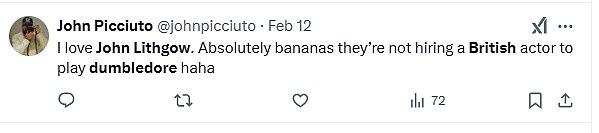 Некоторые поклонники остались недовольны выбором американского актера на роль британского персонажа, особенно учитывая то, что Дж. К. Роулинг настаивала на том, чтобы в оригинальных фильмах снимались британцы. В X фанаты писали: «Не понимаю, почему Джон Литгоу — новый Альбус Дамблдор в сериале HBO о Гарри Поттере. Дамблдор — британец, Литгоу — из США», «Ничего против Джона Литгоу, но Дамблдор и вся франшиза о Гарри Поттере — британские», «Я люблю Джона Литгоу. Абсолютно безумно, что они не нанимают британского актера на роль Дамблдора», «Warner Bros. буквально нужно вытащить что-то из шляпы, чтобы спасти Гарри Поттера. Джон Литгоу в роли Дамблдора, безусловно, оттолкнет многих от просмотра. Что случилось с принципом «все британское»?».