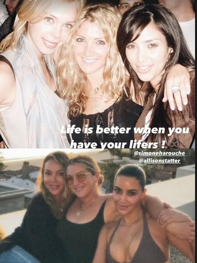 Ким Кардашьян опубликовала в своих историях архивное и современное фото с двумя женщинами, которых она называет своими подругами на всю жизнь. Это Симон Харуш и Элисон Слэттер, с которыми Ким выросла в Беверли-Хиллз, до переезда семьи Кардашьян-Дженнер в Калабасас. «Жизнь лучше, когда есть настоящие друзья», — подписала звезда реалити-шоу «Семейство Кардашьян» две фотографии.