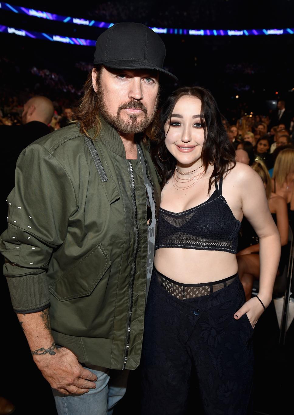 Ноа Сайрус и Билли Рэй Сайрус вместе позируют для фотографии.