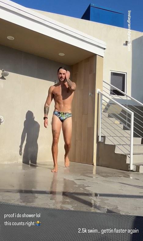 На видео он написал: «Доказательство того, что я моюсь, лол. Это считается?» Он также добавил, что проплыл 2,5 километра и «снова набирает скорость».