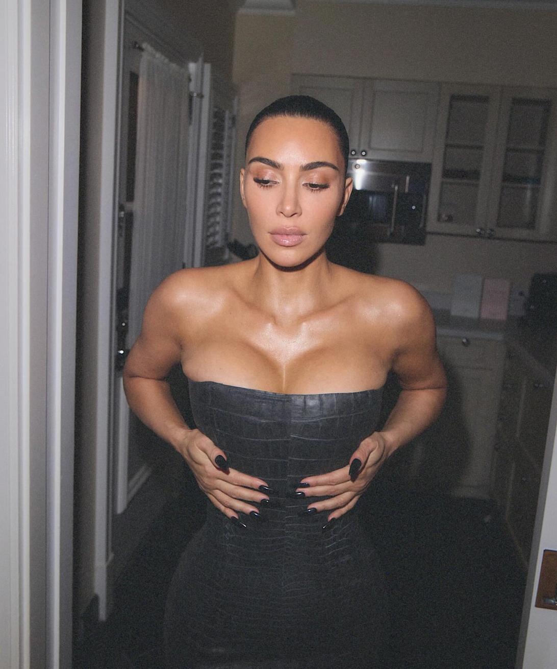 44-летняя владелица Skims во вторник продемонстрировала в Instagram облегающее платье из крокодиловой кожи от Jean Paul Gaultier Haute Couture by Ludovic de Saint Sernin, приняв ряд эффектных поз.