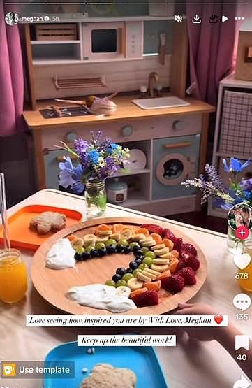Другая поклонница представила свою версию фруктовой радуги от Меган, выложив из клубники, бананов, винограда, черники и апельсинов красочное блюдо для своих детей.