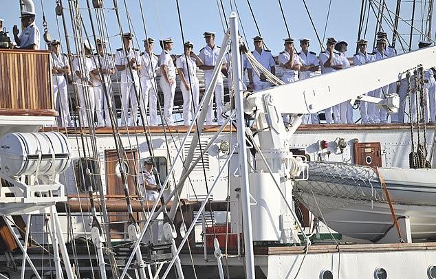 Будущая королева выглядела торжественно, присоединившись к другим курсантам испанского флота перед отплытием трехмачтового парусника из порта Кадис. Родители провожали ее улыбками и взмахами рук, а король Филипп запечатлел это событие на фото.