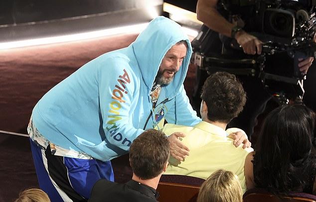 Сэндлер участвовал в скетче с О’Брайеном, одетый в ярко-синюю толстовку и свои фирменные баскетбольные шорты. Комик подшутил над нарядом Сэндлера, что переросло в шуточную драку, после которой Сэндлер встал и ушел, но не прежде, чем подойти к Шаламе.
