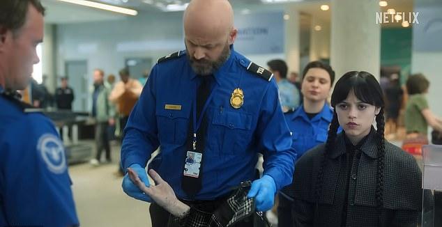 В тизере, выпущенном Netflix, 22-летняя королева ужасов поколения Z шокирует службу безопасности аэропорта, активировав металлодетектор. В начале своего одиночного путешествия она неохотно демонстрирует кастет, электрошокер, мачете, множество ножей и других видов оружия, а также отрубленную руку. Однако проблемы у неё возникают из-за маленького тюбика солнцезащитного крема, тайно упакованного Вещью, любимым персонажем-рукой и спутником Уэнздей, которого играет Виктор Доробанту.