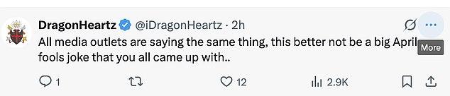 Однако один из пользователей быстро развеял сомнения, написав: «Это была бы отличная первоапрельская шутка, но нет, ребята, ЭТО ПРАВДА».