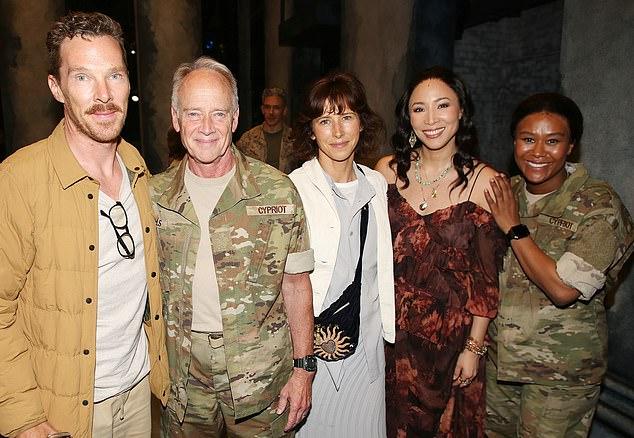 48-летний исполнитель роли Шерлока и 47-летняя Софи с удовольствием позировали фотографам в театре Барримор. Звезда «Доктора Стрэнджа» был одет в белую футболку и бежевую куртку, а театральный режиссер выбрала для выхода белую куртку и серую рубашку.