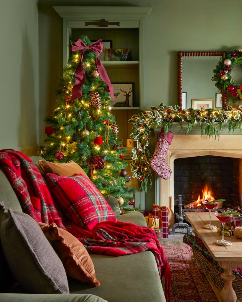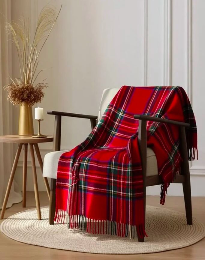 1. Начните с текстиля. Самый простой способ преобразить комнату — добавить правильные пледы и подушки. Ищите классическую шотландскую клетку, узоры с оленями или просто однотонный кашемир и шерсть в красно-зеленой гамме. Скатерть в клетку тартан мгновенно сделает любую кухню праздничной.