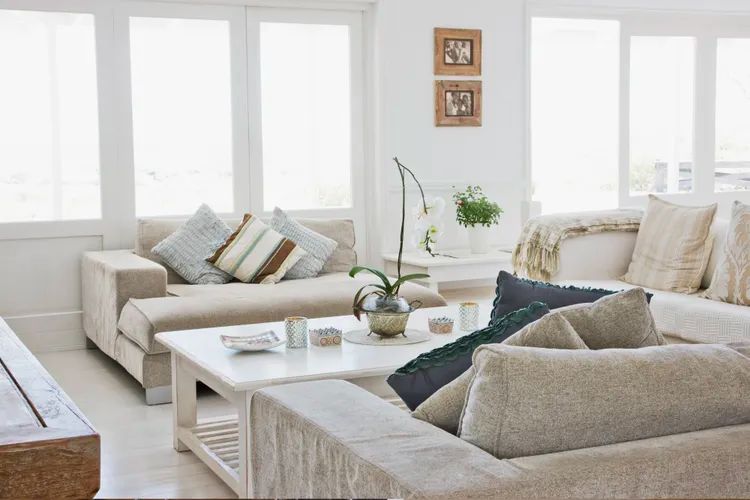Смело сочетайте разные фактуры: бархат, шерсть, лен, ротанг, букле. Простой белый диван мгновенно преобразится, если добавить к нему льняные подушки, шерстяной плед и маленькую бархатную подушку-валик. Именно этот контраст гладкого и пушистого, матового и блестящего создает визуальную глубину и делает интерьер живым и интересным.