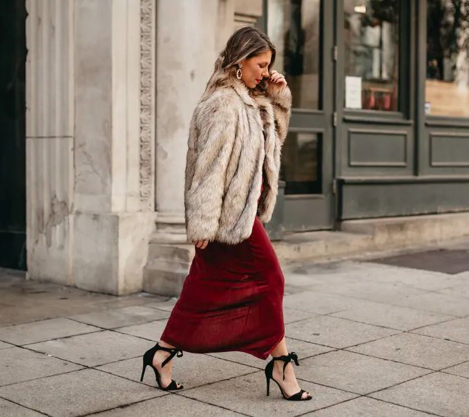 Конечно же, шуба из экомеха — идеальная спутница для вечернего выхода. Она прекрасно дополнит и коктейльное платье с пайетками, и элегантный брючный костюм, и шёлковую юбку-миди.