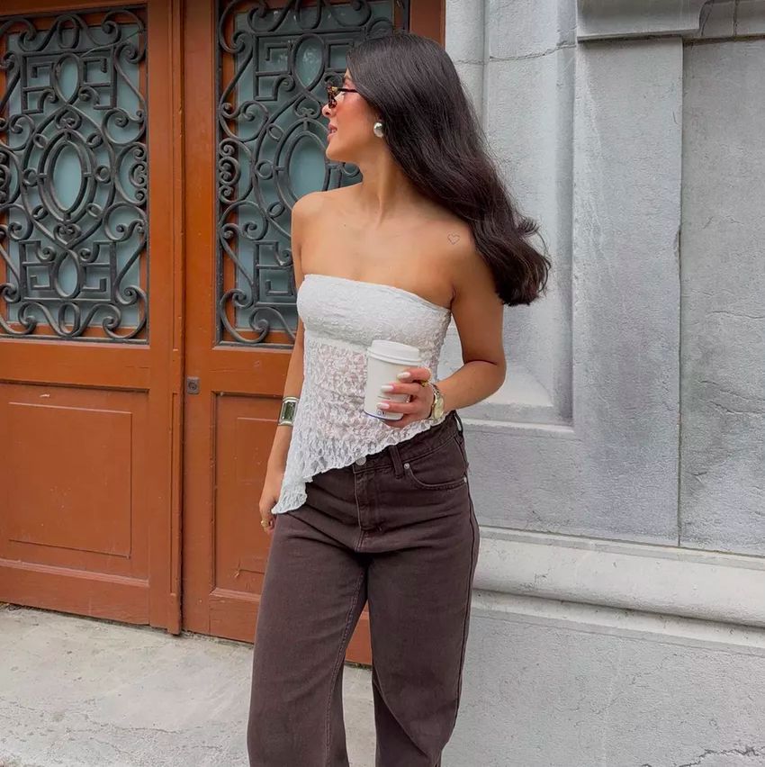 Почему нет: Как и в случае с низкой посадкой, топы-бандо или корсеты без бретелек часто приходится подтягивать и поправлять. Это не только отвлекает, но и может создать впечатление, что вы нервничаете и чувствуете себя неуверенно.