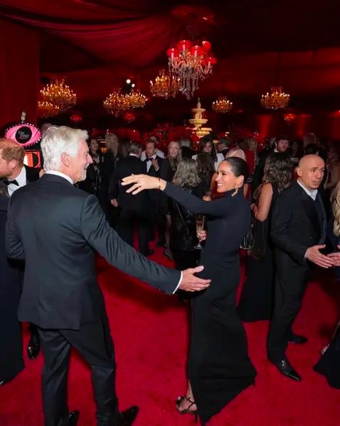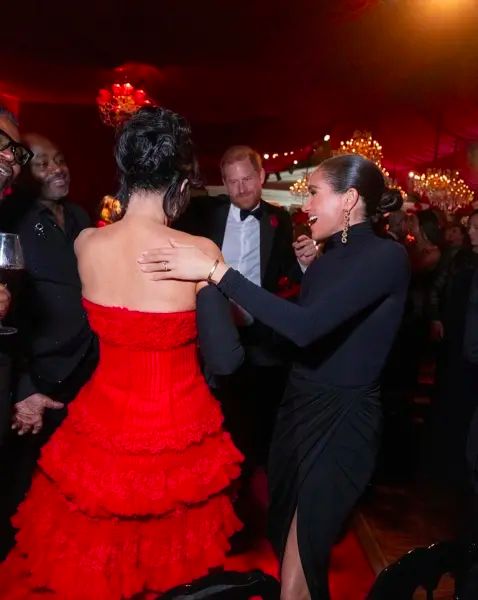 На вечеринке Гарри был с традиционным маком — символом Дня памяти, приколотым к пиджаку, в то время как на Меган такого символа не было.