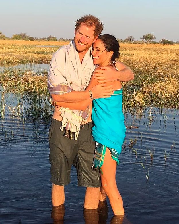 Вторым слайдом герцогиня поделилась архивным фото из 2016 года — начала их романа. На снимке пара обнимается на фоне природы во время их судьбоносной поездки в Ботсвану.