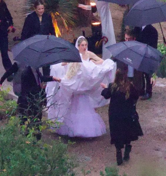 Сама невеста, Эсте Хайм — старшая из сестер-участниц группы Haim, вышла замуж за технологического предпринимателя Джонатана Левина. Для своего главного дня она выбрала роскошное свадебное платье в стиле принцессы от Louis Vuitton, созданное ее другом, дизайнером Николя Гескьером.