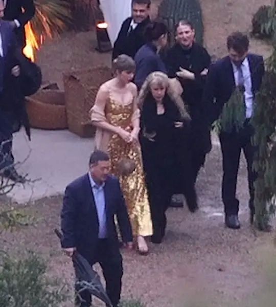 На торжестве Свифт была замечена в прекрасной компании. На нескольких фотографиях, просочившихся в сеть, она запечатлена под руку с легендарной Стиви Никс из Fleetwood Mac. Две певицы, которых связывает давняя дружба, мило беседовали, укрываясь от начавшегося дождя.