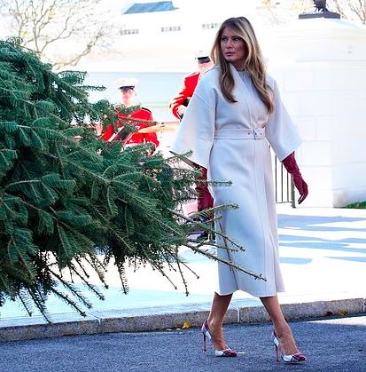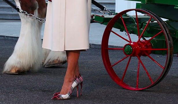 Мелания Трамп часто выбирает классические лодочки этого бренда, но не боится и экспериментов. В её гардеробе есть и смелые красные туфли из змеиной кожи, и модели в клетку, которые она надевала для встречи новогодней ёлки в Белом доме.