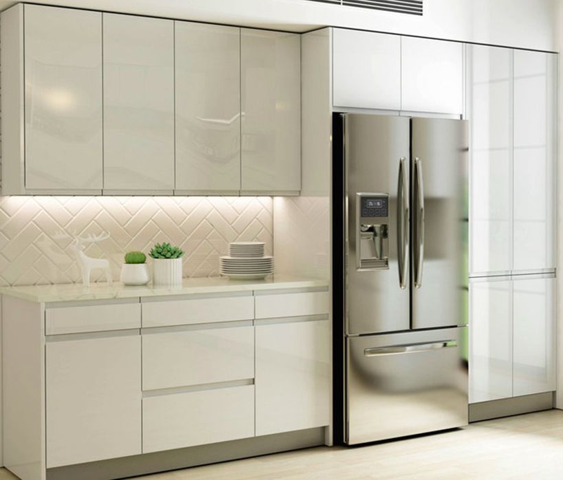 - Как это выглядит: Фасады без ручек (открываются нажатием), встроенная техника, спрятанная за теми же фасадами, и шкафы до самого потолка, которые сливаются со стеной. В результате кухня выглядит не как набор шкафчиков, а как элегантная стеновая панель.