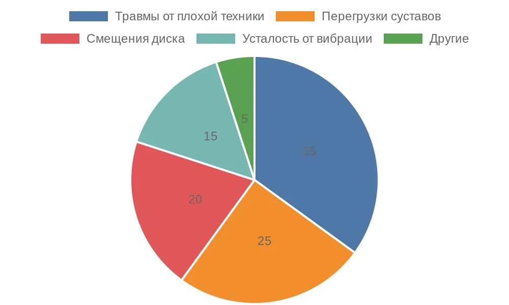 Круговая диаграмма: причины травм с тренировочной штангой (данные на основе обзоров российских фитнес-центров)