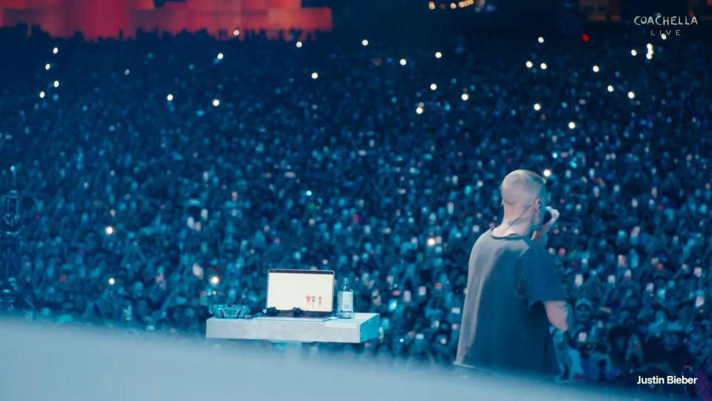 Чтобы хоть как-то оправдать свое присутствие, Джастин попытался вовлечь аудиторию в творческий процесс. Он предложил фанатам писать названия песен в комментариях к прямой трансляции, обещая включить лучшие. Это превратило крупнейший музыкальный фестиваль в гигантский стол заказов в караоке-баре, где диджей берет 5 миллионов за смену (сообщается, что общий контракт Бибера с компанией Goldenvoice составил 10 миллионов за два уикенда).