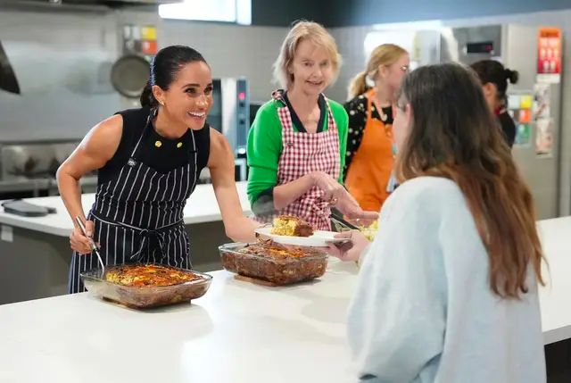 После посещения больницы Меган отправилась в женский приют для бездомных, которым управляет организация McAuley Community Services for Women, чтобы встретиться с жертвами семейного насилия.